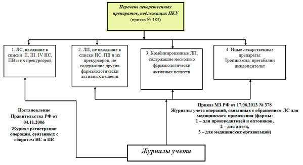 Правила регистрации операций, связанных с обращением лекарственных средств для медицинского применения, включенных в перечень лекарственных средств для медицинского применения, подлежащих предметно-количественному учету (ПКУ), установлены Приказом Министерства здравоохранения РФ от 17.06.2013 года №378н «Об утверждении правил регистрации операций, связанных с обращением лекарственных средств для медицинского применения, включенных в перечень лекарственных средств для медицинского применения, подлежащих предметно-количественному учету, в специальных журналах учета операций, связанных с обращением лекарственных средств для медицинского применения, и правил ведения и хранения специальных журналов учета операций, связанных с обращением лекарственных средств для медицинского применения».