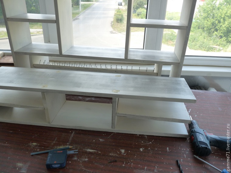 К нижнему модулю присоединился следующий с маленькими полочками.