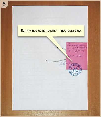 Часть подписи должна быть расположена на самом документе, а часть на наклеенной бумаге. То же требование относится и к печати. Частично печать должна располагаться на документе, а частично на наклейке. Обязательно ставится дата заверения или подписания документа.