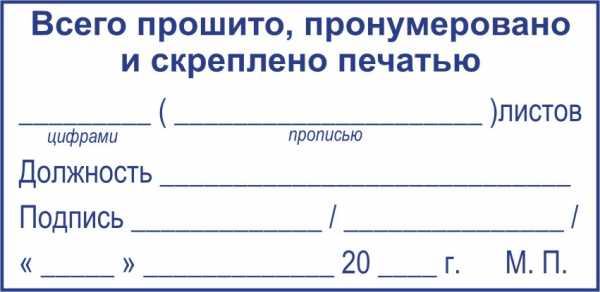 Образец штампа прошнуровано и скреплено печатью