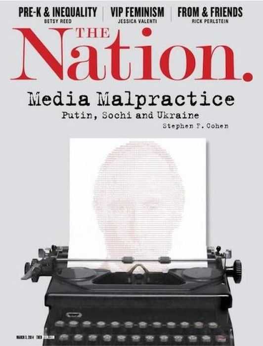 Статья почетного профессора Принстонского и Нью-Йоркского университетов Стивена Коэна "Ложь о России. Как американские СМИ неверно представляют Путина, Сочи и Украину". Автор женат на Катрине Ванден Хувел, главном редакторе левого издания Nation. Коэн пишет, что "демонизация" Путина в новостях равноценна "ядовитой" и недобросовестной практике СМИ, граничащей с паникерскими заявлениями времен "холодной войны"."Освещение событий в России американской прессой деградирует уже долгие годы, хотя эта страна по-прежнему важна для национальной безопасности США. Об этом свидетельствует нынешнее цунами из постыдно непрофессиональных и политически подстрекательских статей в основных газетах и журналах – особенно об Олимпиаде, Украине и неизменно — президенте Владимире Путине. Такая порочная практика в СМИ стала повсеместной новой нормой" — с таких слов начинает свою статью Коэн.