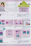 7) Фотографии приведены в двух вариантах (!). Первый вариант передаёт цвет печати. Второй вариант появился при использовании фильтров камеры; такое ухищрение придаёт изображению контрастность и помогает получше рассмотреть и фото, и инструкции.8) И последнее. Просмотр японских журналов по пэчворку-квилтингу приводит русских читательниц в какой-то экстаз. Не раз это наблюдала и не раз испытывала. Причин тому миллион: красивые картинки на толстой глянцевой бумаге, качество работы японских мастериц, крохотулечные вещички, для которых требуются детальки с ноготок, тонкое и изощрённое ручное шитьё, обилие тканей различной цветовой гаммы, безграничная фантазия, разные стили и техники лоскутного шитья, богатство японского национального рынка товаров для рукоделия и сбыта вещей ручной работы и т. д. и т. п.