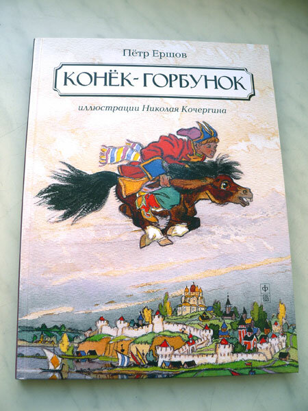 Ну и напоследок одна баечка, как надо творчески относиться к иллюстрациям: обратите внимание на рисунок на крышке переплета, он может показаться немного знакомым, особенно, если прикрыть бумагой самого конька-горбунка. Эту иллюстрацию примерно год назад Амфора уже использовала в сделанной по заказу "Комсомольской правды" книге, но называлась она "Иван-царевич и серый волк", а поскольку конек-горбунок в данной сказке явно лишний (с волком его перепутать сложно), то его просто отрезали и использовали только нижнюю часть рисунка, увеличив с ширины оригинала в 160 мм до где-то с 420 - т.е на целый разворот...