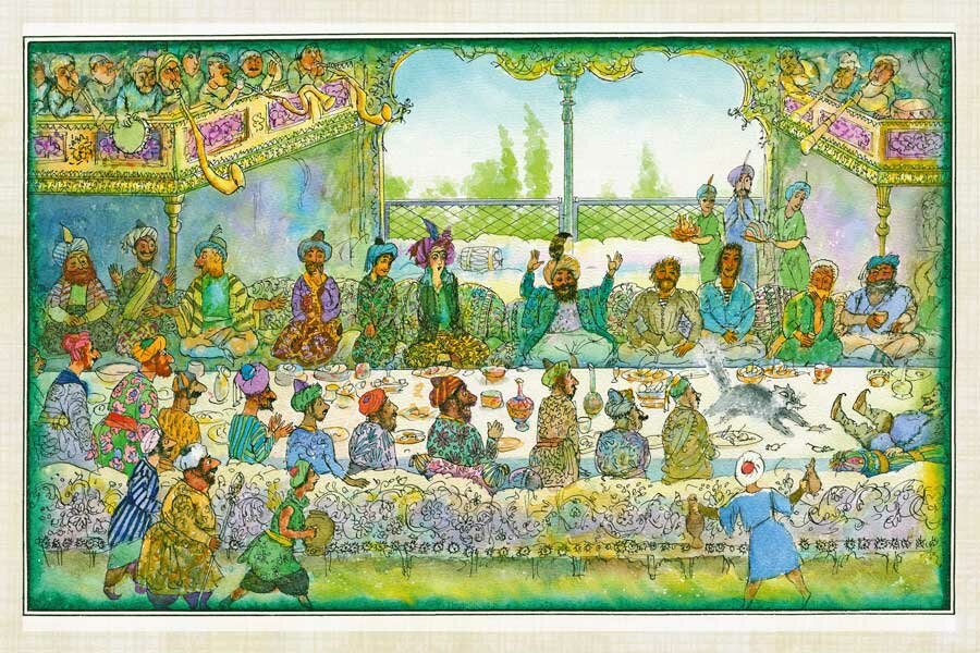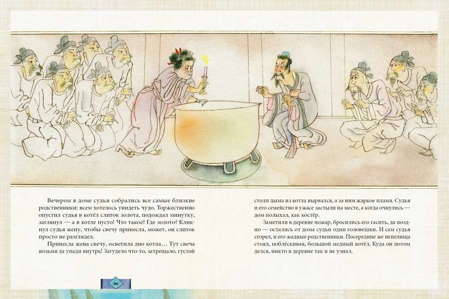 "Волшебный котел" - это сборник сказок народов мира, причем буквально со всего мира - от разных стран по одной истории в общий (волшебный!) котел. Вот и получился сплав сюжетов, историй, притч и баек. Есть сказки из Кении, Сирии, Испании, Индонезии, Чехии, Японии, Финляндии, Сербии, Афганистана, Ирландии, Карелии, Боснии и тд. Такое разнообразие мира нашло отражение и в иллюстрациях, каждая сказка проиллюстрирована в какой-то своей, особой манере: вот мрачный, тяжелый лесной сумрак из карельской "Сын-медведь", вот яркая беззаботная акварельная бабочка из одноименной филиппинской сказки, вот калиграфия арабских миниатюр из восточной "Сказки о волшебном коне", вот лукавая ехидная лиса из венгерской сказки "Два жадных медвежонка"... При этом в качестве "составляющих" начинки котла послужили великолепные тексты Михаила Салье, Людмилы Брауде, Веры Марковой, Нисона Ходзы, Унелмы Конкка и др.