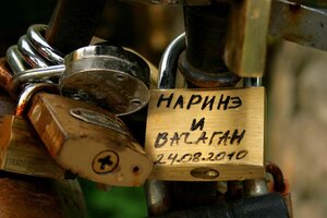 7-8. В парке несколько мостиков, и все они, разумеется, увешаны свадебными замками. Вот некоторые из них: