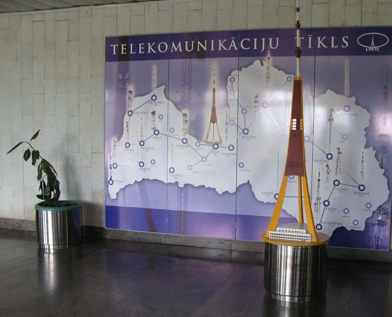 41.** Внутри можно увидеть макет телевизионной башни и схему телекоммуникационной сети по всей Латвии: