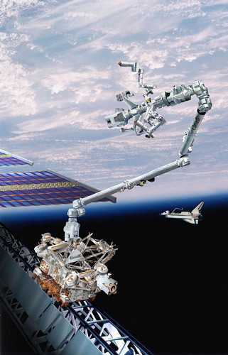 Запущенная в 1981 году система Canadarm (Shuttle Remote Manipulator System) стала рукой помощи Канады для космической программы США. Ее задача —запускать новые спутники, забирать старые или сломанные, перемещать астронавтов и проверять корпус шаттла на целостность. Управляема дистанционно. Длиной 15,2 м и диаметром 38 см, она может двигать объекты весом до 29 тонн.