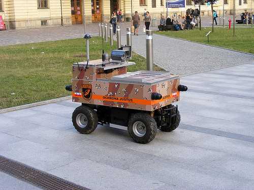 В прошлом году дистанционно управляемый робот-охранник Justus был представлен в Кракове, Польша. Его призвание — круглосуточно патрулировать людные места. Он не знает плохой погоды и усталости, в штаб-квартиру информация передается при помощи камер и микрофонов. К тому же Justus оснащен динамиком, что позволяет ему общаться с прохожими. Кто-то просто обязан произнести: «У вас есть пять секунд, чтобы подчиниться...».