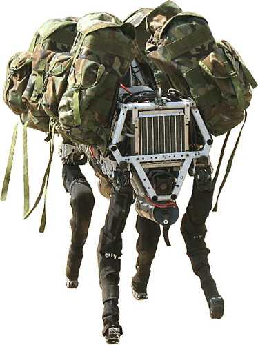Этот динамически стабильный четвероногий робот был создан Boston Dynamics и агентством по перспективным оборонным научно-исследовательским разработкам США. Робот-мул способен переносить 153 кг груза и передвигаться по пересеченной местности со скоростью 6,5 км/ч. Питает его двигатель мощностью 10 л. с., у каждой ноги — четыре актуатора, за которыми следит ПК на Pentium 4.