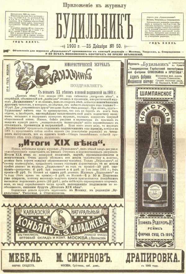 «Будильник» — журнал-долгожитель: с небольшим перерывом он проработал более полувека, с 1865-го по 1917 год. Правда, за это время он почти полностью сменил формат: если в первые годы работы «Будильник» публиковал злободневную оппозиционную власти сатиру, то впоследствии перешел на более легкий и невинный юмор.