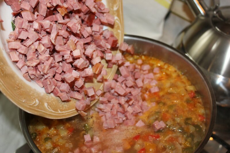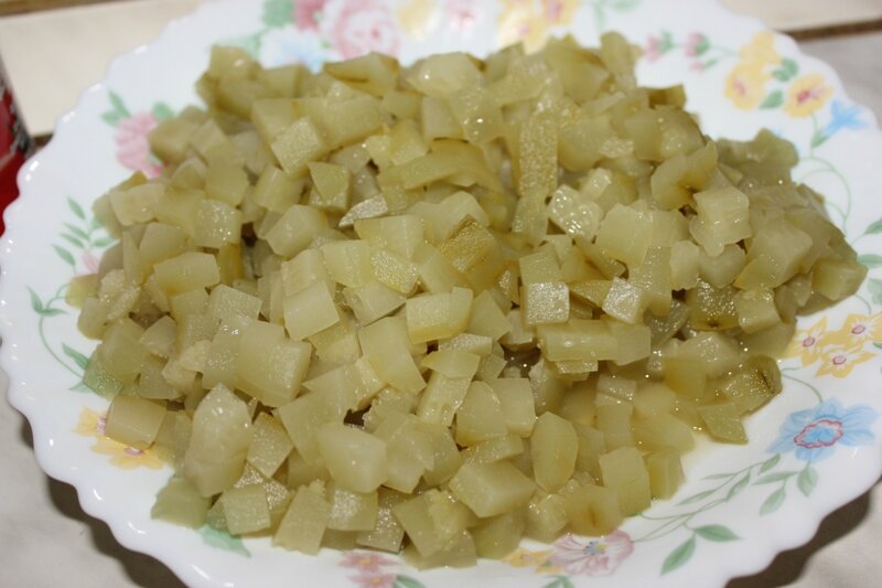 ... и порезанные мясо, копченности и ветчины. Вот тут надо дать повариться минут десять чтобы вкусы "переженились"...