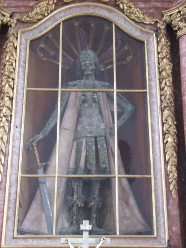 Святой Gratian - еще одно произведение брата Адальбарта Старшего в Waldassen.Здесь скелет нарядили в некое подобие древнеримского доспеха, включая сандалии, кирасу и т.д.