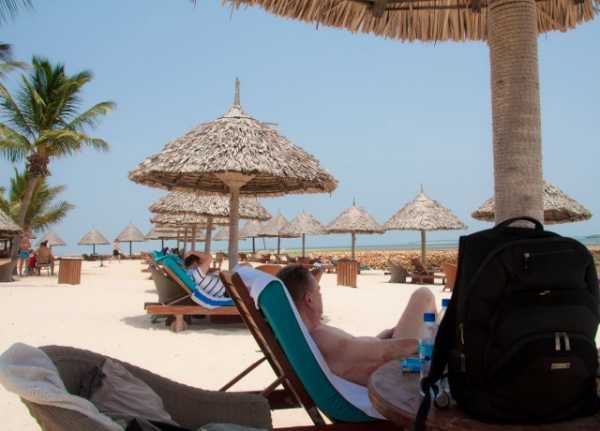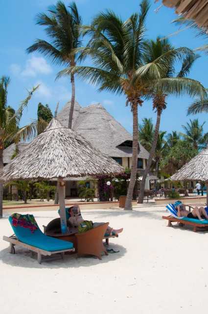 Всё на пляже напоминало рекламу пресловутого баунти) Белый песок, синий океан, безоблачное небо, кокосы на пальмах....