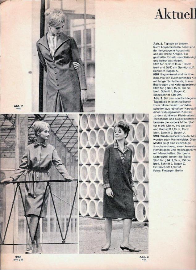 А теперь, "PRAMO" ("ПРАМО" — практише моден) с 1961 по 1965 год. Фотографии идут по порядку, как в журналах. На фотографиях есть указание даты выпуска журнала. Модели одежды, хотя и кажутся очень простыми, но рассматривать их можно долго, поскольку простота кажущаяся — у каждой модели интересный крой. Намеренно не даю анализ, что и как изменялось в крое, объемах, образах, аксессуарах. Тем, кто любит анализировать модные тенденции, несложно будет проследить самим, как изменялась мода в течении десятилетия.