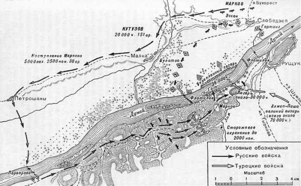 Карты, отображающие марш генерала Маркова и окружение турецких войск на левом берегу Дуная.