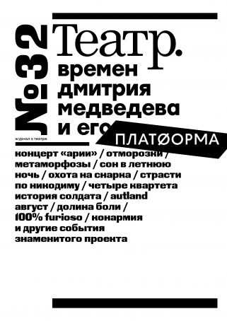 PDFЧетвертый номер журнала в значительной части посвящен Петербургу. В своем «Путеводителе» Лилия Шитенбург проходится по главным его театральным домам. Героем номера становится лауреат Европейской Театральной премии 2011 года Андрей Могучий. Эскизы его постоянного соавтора художника Александра Шишкина представлены в спецпроекте. Приметы питерского андеграунда 80-х и 90-х, частью которого когда-то были Андрей Могучий, театр DEREVO, русский инженерный театр «Ахе» и даже театрализованные представления «Поп-механики», разбирают в кросс-интервью критики Дмитрий Ренанский и Николай Песочинский. А писатель Дмитрий Волчек делится личными воспоминаниями из бархатного подполья. Развитие традиции и возможность передачи мастерства режиссуры обсуждается в двух интервью — со Львом Додиным и с его «практикующими» учениками. Также в номере история театральной цензуры, стихи Хайнера Мюллера и театральные опыты Алистера Кроули.