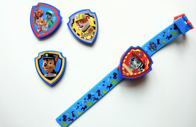 К "Щенячьему Патрулю" раз в два месяца издается спецвыпуск - по наполнению оба журналы похожи, но в дополнительном номере задания собраны по одной теме (например, в июне - "Насекомые"), а еще есть подарок! В прошлый выпуск был вложен волшебный фотоаппарат с меняющимися картинками, а в свежий - игрушечные часики со сменными значками. Влад с ними не расстается!