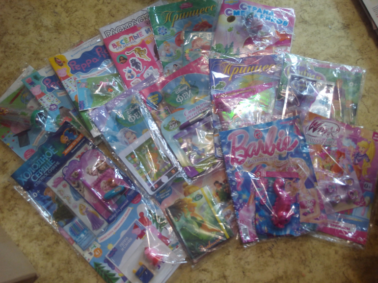 Порой жалко купить журнал на один раз с принцессами Диснея или Тачками, или Трансформерами, Звездными войнами и героями Марвел за 150-250 руб, теперь появилась возможность купить эти журналы, но 16-17 года выпуска, которые уже не продают в киосках, но зато по цене 10-15 руб. А так же журналы с игрушками, наклейками, коллекционными предметами, книги, раскраски, взрослые журналы, которые всем известны и на различные темы: рукоделие, шитье, декор, сад и огород, обустройство дома и сада, рыбалка, охота, авто, беременность, по воспитанию, кроссворды/сканворды/судоку/головоломки, детские, путешествие, путеводители, кулинария, заготовки, вязание, приусадебное хозяйство, тайны и загадки, астрология, мода, история, мужские и можно продолжать до бесконечности!