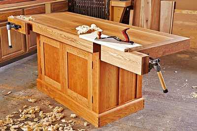 Представьте себе удовольствие от работы за таким роскошным верстаком. Теперь перестаньте мечтать и приступайте к его постройке, ведь вы это заслужили!