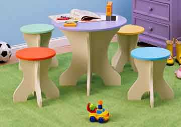 Такую мебель, которая отлично подходит и для чаепития, и для раскрашивания картинок, вы легко сделаете с помощью циркулярной пилы, электролобзика, фрезера и электродрели.