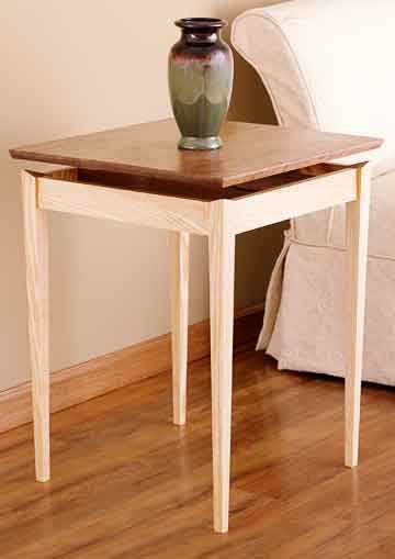 Контраст между древесиной ореха и ясеня подчеркивает зазор между крышкой и основанием столика.