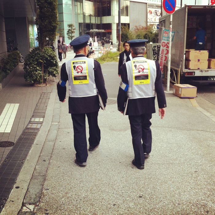 Токийский фотограф, который постоянно прикрывал видоискатель своего фотоаппарата, чтобы прохожие, видимо, не стырили его ракурс. И лишь изредка, украдкой, убирал картонку и смотрел на картинку.