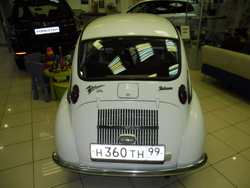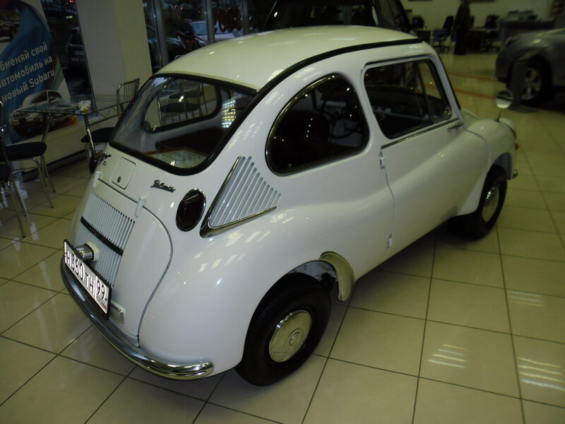 А вот настоящий раритет - Subaru 360. Он регулярно появлялся на Олдтаймер-Галереях, а также на автосалонах на стенде Subaru. А потом мы с Мидори встретили его в шоу-руме Subaru в Крылатском. Собственно, это Мидори его заметила - у неё глаза большие, она видит хорошо. Subaru в американской комплектации - это один из первых японских автомобилей, продававшихся на том рынке.