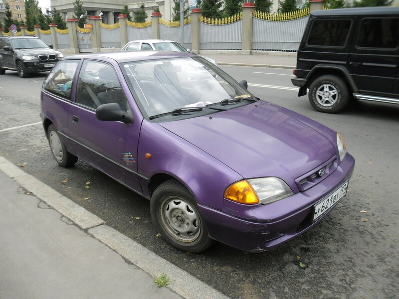 Subaru Justy второго поколения в кузове венгерского Suzuki Swift принадлежит одному владельцу с 90-х. Соответственно живёт с того времени на Пресне.