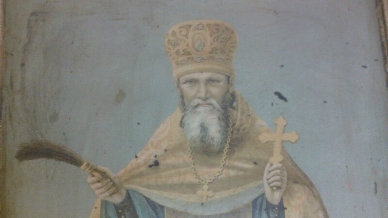 Над святым сохранился фрагмент надписи, который можно прочитать как «...оровицкий». Но я не вспомнил святителя с таким титулом. Пока что больше вопросов, чем ответов. Я смотрел на лик неизвестного святого и думал: какой смиренный святой — так долго терпел кощунство над своим образом, какой великий святой — по его молитвам чудесно сохранился его лик на доске и сама доска вновь возвращена в храм. Тем более захотелось узнать имя святого, чтобы научиться у него терпению. Если святой вытерпел такое поругание, что же нам остается, как не потерпеть немощи наших ближних. Я помолился неизвестному святому и попросил его научить меня его смирению.