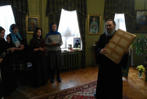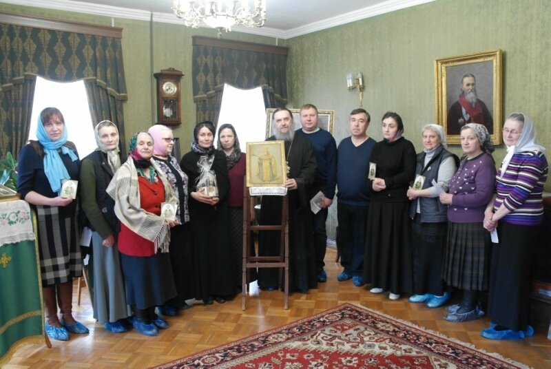 Я это говорю с тем, чтобы спросить: мог ли святой Иоанн Кронштадтский забыть этот день — 8 февраля (или 21 февраля по-новому стилю), если в этот день родилась его мать Феодора Власьевна? Вопрос, очевидно, риторический и задан только с одной целью, чтобы подчеркнуть, сколь важен был для отца Иоанна день 8 февраля. И после этого разве мы, почитатели и служители св.Иоанна Кронштадтского, могли не почтить этот день в Мемориальной Квартире Дорогого Батюшки?Сегодня - 21 февраля - в Квартире Иоанна Кронштадтского мы провели праздник памяти его родимой матери. Собрались сотрудницы музея. Я кратко рассказал о Феодоре Власьевне, мы помолились о упокоении ее души. Но какой день рождения бывает без подарков? Вот и у нас были подарки, только преподнесла их сама Феодора Власьевна. И этим подарком стал новонайденный старинный портрет Иоанна Кронштадтского. Где-то неделю назад ко мне на электронную почту пришло письмо от р.Б.Татьяны. Она периодически посещает храм Леушинского подворья. Я как-то освящал предприятие, где она трудится. Она мне написала об удивительной истории, связанной с портретом Иоанна Кронштадтского.Вот ее письмо:«Добрый день, отец Геннадий!В приложении к письму Вы найдете фото образа Иоанна Кронштадтского с кропилом, который я бы хотела передать Вам.Небольшая история, как он ко мне попал.Эти Рождественские каникулы мы семьей решили провести в Сергиевом Посаде, чтобы встретить там Рождество Христово и помолиться у мощей Преподобного. Недалеко от Сергиева Посада находится замечательный городок - Переславль Залесский, в который мы решили заглянуть по пути. Поселили в нем много музеев, среди которых был «Музей хитрости и смекалки».Музей был основан в 2011 году Олегом Борисовичем Гундериным. Благодаря энергии создателя никогда не затихает работа по сбору экспонатов для музея, коллекция пополняется постоянно.Организаторы выставки сделали акцент на старинных предметах быта, столетия назад применявшихся в крестьянском домашнем хозяйстве. Это всевозможные прялки, открывашки, трость-табурет, бутылка-холодильник, изделия из керамики, ловушки для садовых вредителей, примитивные безмены, одежда, домашний текстиль, утюги и многое другое. В одной из комнат музея устроен магазинчик старинных предметов крестьянского быта, где выставлены на продажу настоящие старинные прялки, утюги, книги, посуда и прочее.И вот, представляете, я там среди коллекции старинных утюгов увидела как бы фото на металле, в рамке — образ Дорогого Батюшки Иоанна Кронштадтского. Помимо этого образа в продаже не было больше ни одной иконы. Поскольку зрение у меня не очень, я переспросила продавщицу, действительно ли это Иоанн Кронштадтский? Она утвердительно кивнула головой, сказав при этом, что вещь ценная, старинная, конца 19 века.Я взяла с благоговением образ в руки, внимательно рассмотрела его. Да, видно было, что портрет старинный. Оставлять его в магазине посреди утюгов и прялок мне не хотелось. Но, к сожалению, необходимой суммы с собой не оказалось. Пришлось все же оставить портрет. Но по возвращении в Петербург меня никак не оставляла мысль, что образ Батюшки нужно обязательно как-то забрать. Я нашла в интернете телефон директора музея, Олега, позвонила из Петербурга, объяснила ему ситуацию и попросила найти возможность переправить его в Москву, где мои коллеги по 