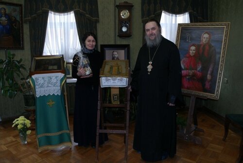 Я в это время находился на дальнем приходе. Возможность приехать в Питер у меня была только сегодня - на музейный праздник Феодоры Власьевны. В итоге так получилось, что передача портрета стала главным событием сегодняшнего праздника. Татьяна с директором своего предприятия Евгением приехали в Кронштадт вместе с упакованным портретом. Я встретил их еще у памятника отцу Иоанну. Можете себе представить, с каким волнением мы распаковывали портрет, ожидая, каков же он?