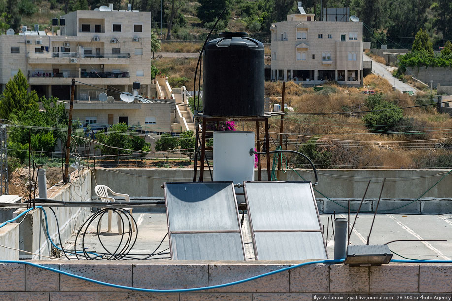 03. Некоторые ставят черные баки сверху. Почти всегда это арабские семьи, у которых в доме живет много народу и 200 литров им не хватает. Если смотришь на квартал и все баки белые - это еврейский квартал, если баки черные сверху - арабский. Конечно, бывают и исключения.