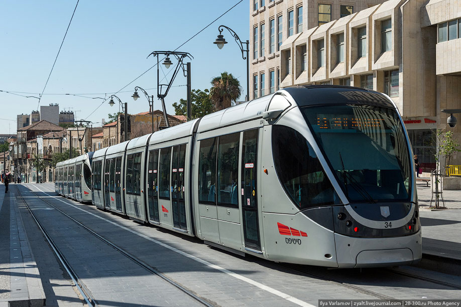 08. Трамваи, заказанные для Иерусалима, специально оборудованы в соответствии с израильскими требованиями безопасности. Вагоны имеют пуленепробиваемые стёкла, а все части двигателя скрыты в кожухе вагона, чтобы в них нельзя было спрятать взрывные устройства.