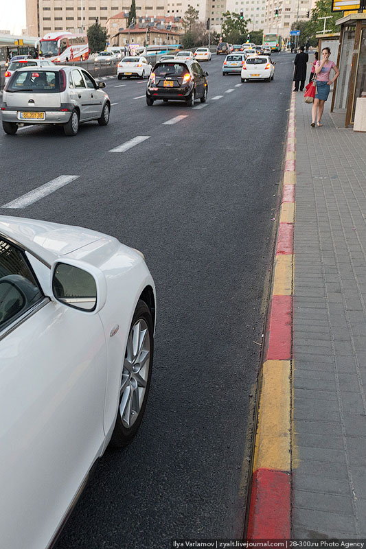 19. Если бордюр в красную полоску, то стоянка запрещена, если в синюю, то это зона платной парковки. Очень удобно.