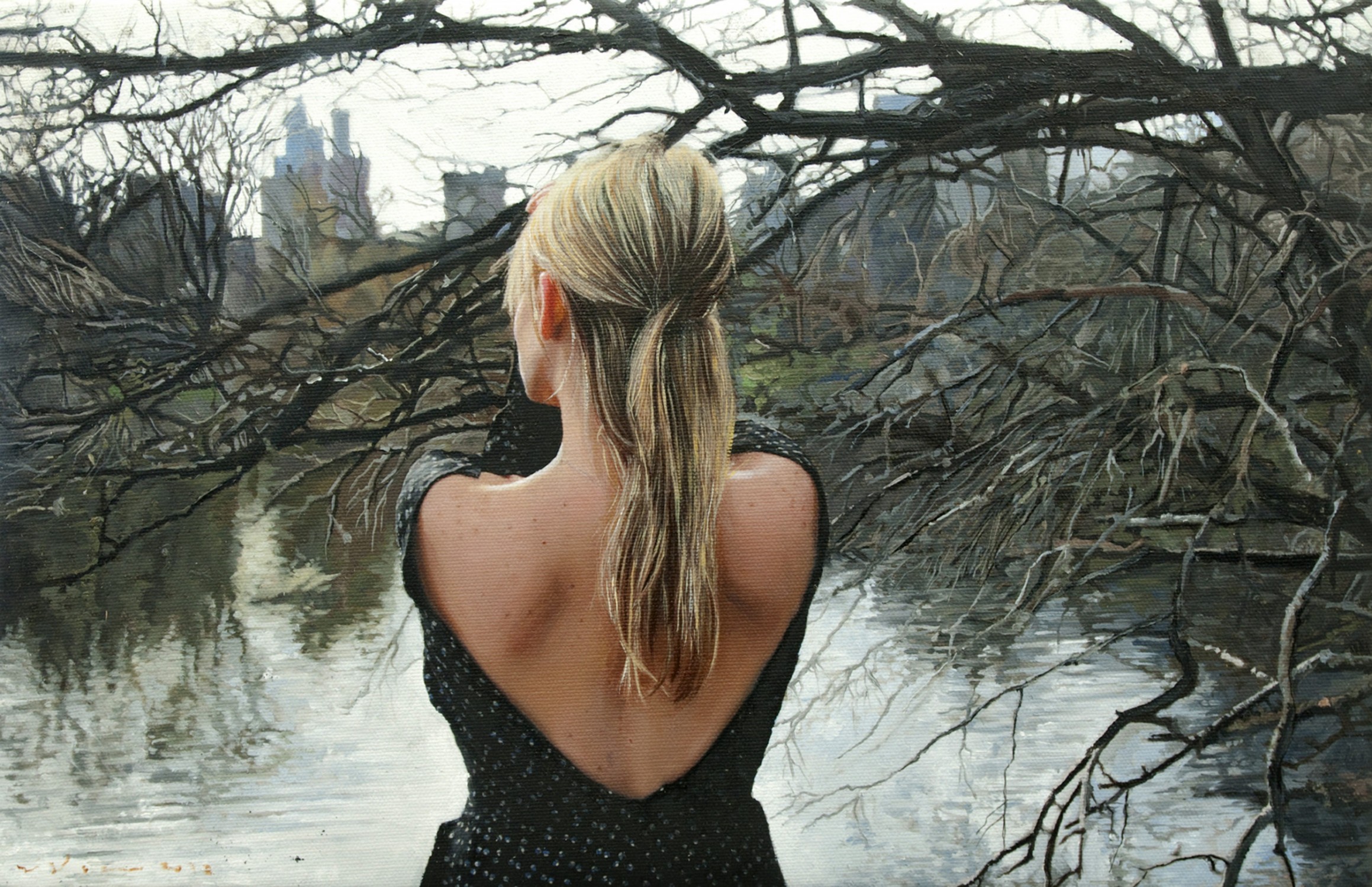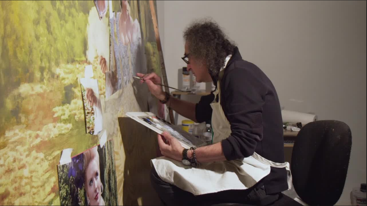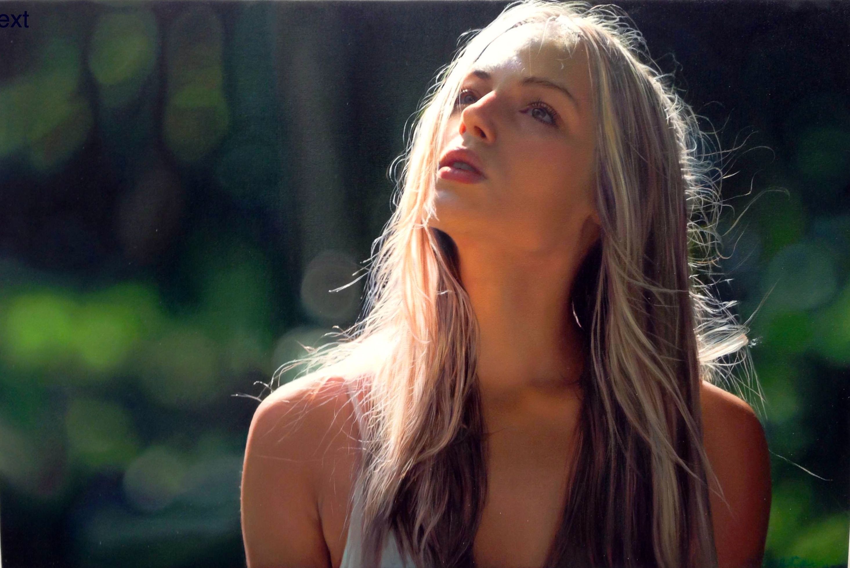 — Творческий процесс поэтапный, начинается все с модели, потом я снимаю фото и видео материал, который составляет основу для будущих картин. Затем тщательно отбираю кадры на компьютере, которые проектирую на стену, таким образом определяя размер холста и, на основе проекции, начинаю работать маслом с самой крупной кистью. Я начинаю с абстрактного рисунка, он составляет 60-70% картины, следующий этап — тщательно прорисованные детали, кистями все тоньше и тоньше.