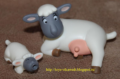 А овечка по размеру очень маленькая, больше похожа на ягненка