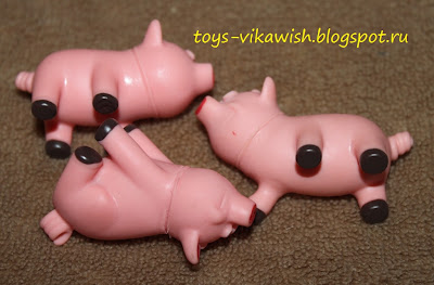 Поросята хорошенькие, милые, маленькие (всего 3-4 см) меньше, чем те, которые у нас уже есть. Не понравились неаккуратные стыки на шеях поросят - выглядит как-то страшновато (