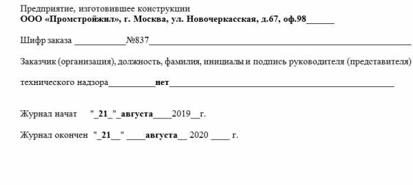 - Предприятие, которое изготовило упомянутые в журнале конструкции (с адресными данными).