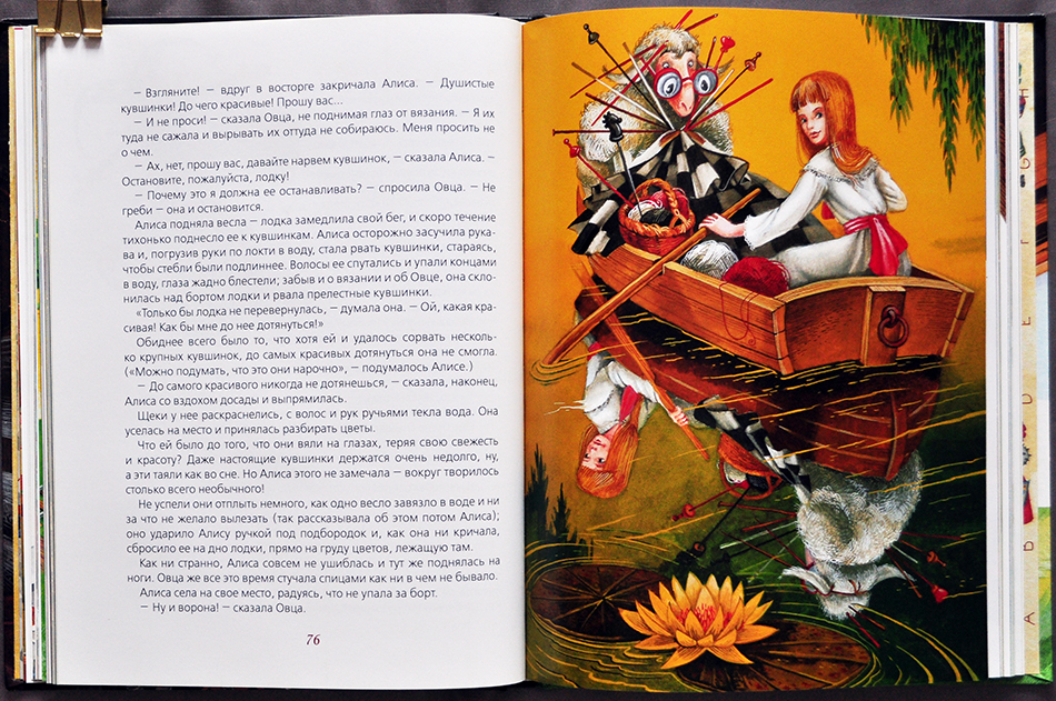 Несмотря на то, что Алис у меня дома уже достаточно, не могла я отказаться от Алисы с чудесными, добрыми, сказочными иллюстрациями Максима Митрофанова. Еще в 2013-ом году я беззаветно влюбилась в его Питера Пэна, который у меня есть аж с дарственной надписью художника :)) Жаль, что в продаже сейчас только его издание вот такое, возможно кому-то оно покажется даже более уютным, формат 205 на 260 мм, моя книжка побольше (высота 304).Но вернемся к Алисе. Две чудесные книжки достались мне в качестве настоящего новогоднего подарка, и я сразу же в них влюбилась)) Нет, ну как тут не влюбиться в такого синего гусеницА в тюрбане? А в белоснежного чеширика с шикарной белозубой улыбкой? :)) И сама Алиса здесь мне очень понравилась. Если говорить об образе именно Алисы, то этот образ стал одним из любимых (помимо Тенниела и Базановой). Другие персонажи также не могут не вызвать улыбки. С какой-то легкостью я прочла эти книги. Иллюстрации в них практически на каждом развороте, текста иной раз на разворот мало, зато есть, что поразглядывать - в иллюстрациях максима Митрофанов присутствует множество деталей, которые интересно наблюдать: как раскрашены тарелки и чайники, обои, забавные отражения Алисы в зеркалах и еще много всего разного-прекрасного! Поразглядываем? :))