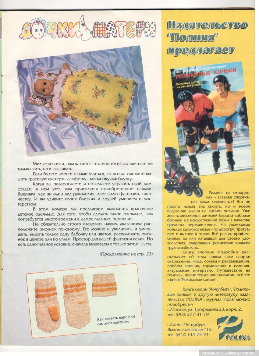 Еще один номер журнала отсканировала. Рекомендую фиолетово-розовое платье для куклы с обложки, для него есть выкройка. Еще мне понравилась заметка о сочетании цветов.
