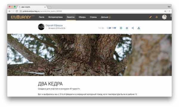 Александр Головин, видеоблогер и путешественник Я стал использовать Enjourney изначально только в качестве дополнительной платформы для публикации своих видео с YouTube, однако практически сразу сайт затянул, и я стал писать. Сейчас, конечно, я и на других платформах публикуюсь, однако это все «копипаста» именно из Enjourney, так как именно там мне удобнее писать и редактировать публикации. Если говорить о преимуществах сервиса, то одним из главных, хоть это и субъективно, является именно относительно узкая направленность. По большому счету, это социальная сеть для путешественников и людей, которым нравится следить за поездками других. В плюсы Enjourney я бы еще записал отсутствие ограничений по загрузке файлов, то есть там не нужно уменьшать размер фото. Плюс поиск публикаций без хэштегов по стране, городу, бюджету поездки, типу поездки, оперативную службу поддержки, отсутствие рекламы — скорее всего, она появится, но уверен, что не будет навязчивой. А еще относительно несложно подняться в рейтинге пользователей — нужно лишь не очень редко делать интересные публикации. | |