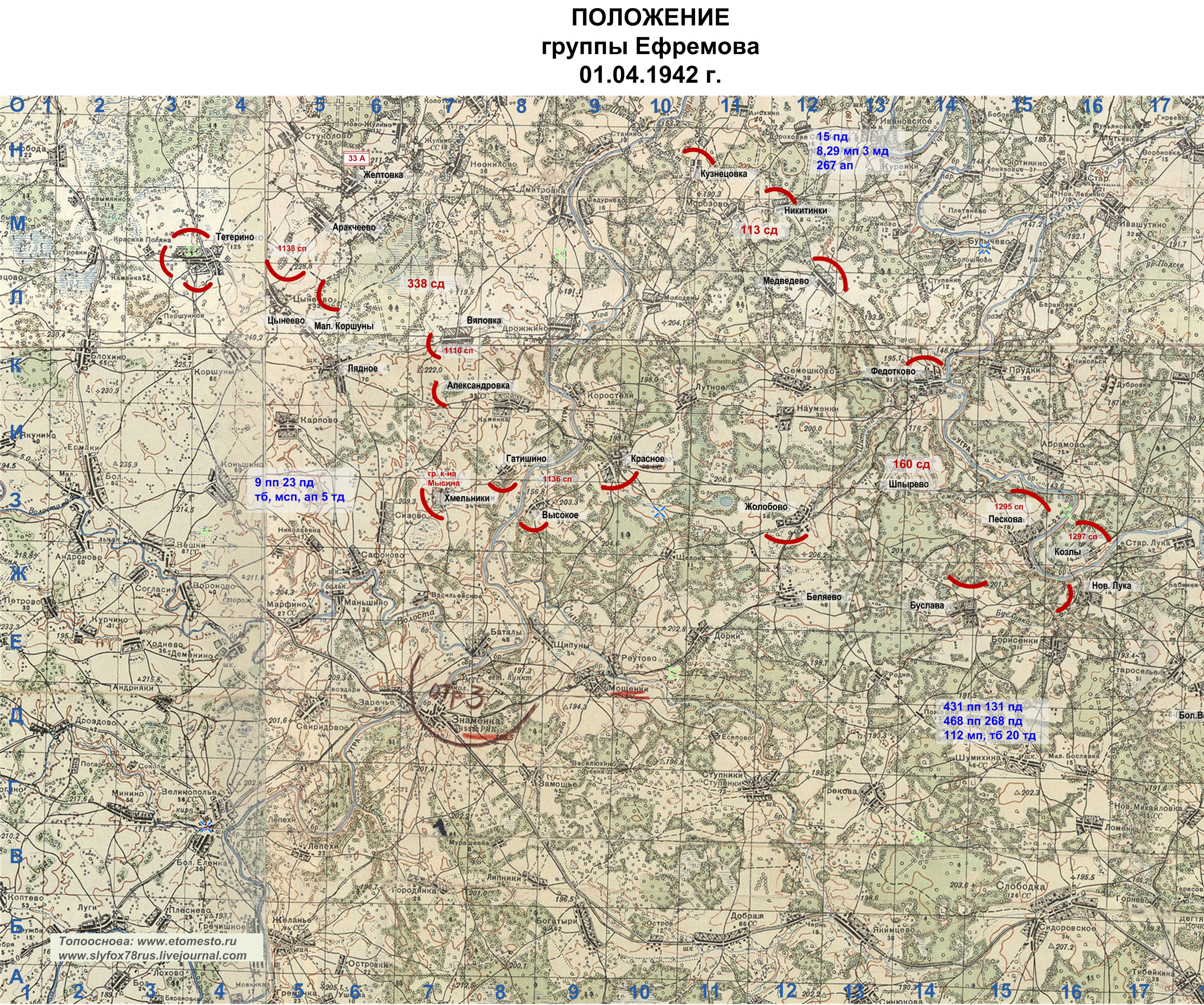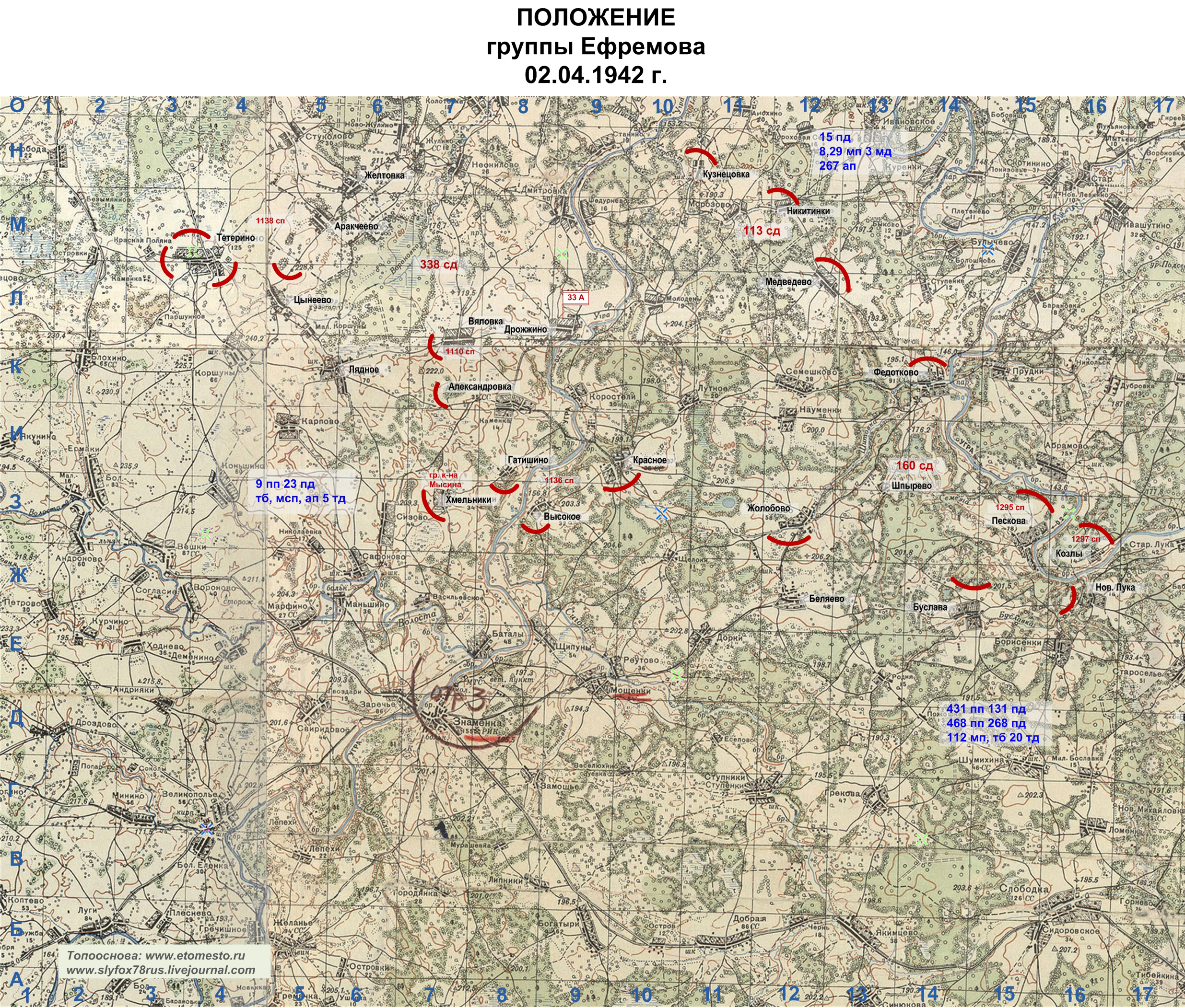 10.04.42 утром противник начал наступление на Аракчеево, Вяловка, Александровка, Хмельники, Манулино, Тякино.