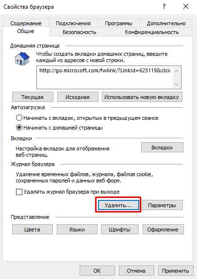 - После откройте вкладку «Общие» и нажмите кнопку «Удалить» в подразделе «Журнал браузера».