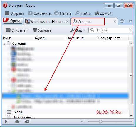 И затем в появившемся списке истории можем поискать нужный нам уже посещаемый сайт: