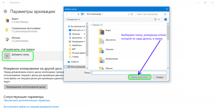 Конечно, в «Параметрах архивации» у вас также есть возможность исключить из резервного копирования определенные библиотеки и папки. Для этого просто нажмите кнопку «Добавить папку» в разделе «Исключить эти папки».