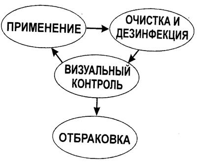 Цикл применения стоматологических изделий и инструментов, подлежащих одной лишь дезинфекции, представлен на рисунке 11.