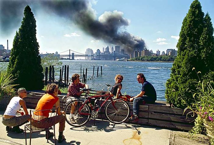 Томас не стал публиковать ее, потому что "тогда нам не следовало на такое смотреть". Пятеро молодых друзей с велосипедами отдыхают на набережной Бруклина, весело болтая на фоне распространяющихся по Манхэттену клубов дыма. Хепкер посчитал, что тема его снимка слишком тяжела и опасался, что фотография "вызовет не те эмоции". Но со временем понял, что снимок "стал крайне важен".