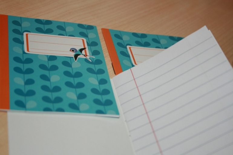 Самый легкий - это просто разрезать обычную школьную тетрадь. Минус его в том, что пол тетради пропадает зря - эти листочки можно пустить на записочки и прочее, но мне их как-то жалко. Зато Катя как раз этот способ очень любит;) С другой стороны, ее можно понять - сделать 11 тетрадей по математике и 11 тетрадей по русскому языку можно только таким "конвеерным" способом.