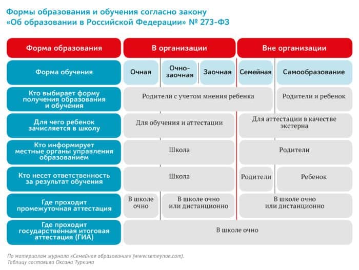 Формы образования и обучения согласно закону «Об образовании в Российской Федерации». №273-ФЗ. Таблица. Составила Оксана Туркина. По материалам журнала «Семейное образование»(www.semeynoe.com)/ Фото www.lori.ru, PhotoXPress// Фома. — №9(173) – сентябрь 2017. – С.27. – (рубрика «Вопрос номера. Семейное образование»).