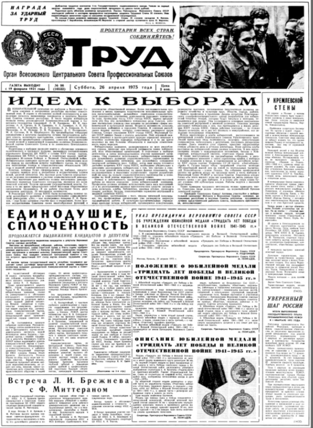 Мы жили вместе с мамиными бабушкой и дедушкой, и у них были иные предпочтения в печатной продукции. Вначале они выписывали "Известия", которую заменила "Социалистическая Индустрия", а потом "Труд".В этих газетах было меньше официоза, новости были более-менее человеческие и можно было прочитать какую-нибудь интересную информацию, а не только вести со строек пятилеток и полей.Газета "Труд" - печатный орган профсоюзов.Первые две страницы можно было не читать - во всех центральных газетах они мало чем отличались.